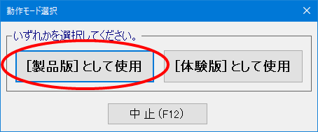 (3) 動作モード選択画面で「[製品版]として使用」を選択します。