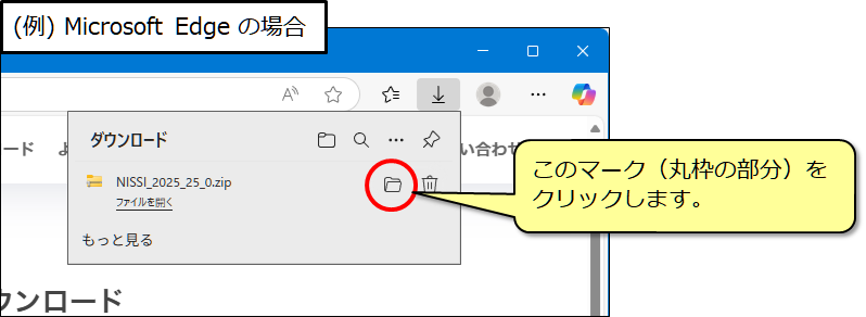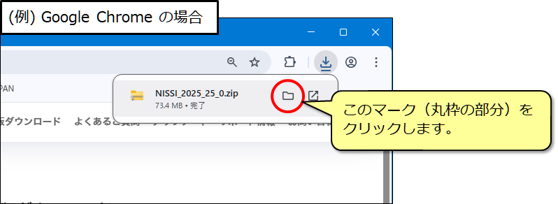 (3) ダウンロード完了後、保存先のフォルダを開きます。