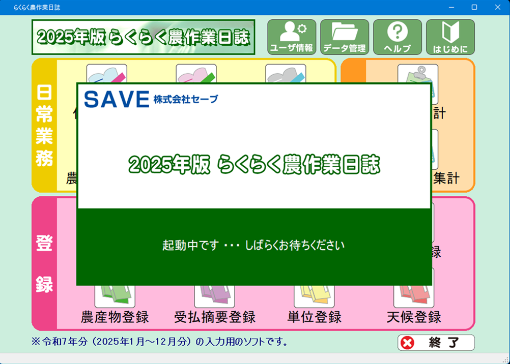 ホームエラー、トラブル ソフト起動時に「起動中です しばらくお待ちください」が表示されたまま、先に進みません。 2025年7月1日 SHARE ポスト シェア はてブ LINE ごくまれに、「起動中です・・・しばらくお待ちください」が表示されたまま、画面が変わらないことがあります。その場合はPCを一度再起動し、もう一度ソフトを起動してください。 キーワード:トラブル、進まない、固まった、フリーズ Q&A番号:0081b この記事は参考になりましたか? この記事は参考になりましたか? 参考になった 参考にならなかった