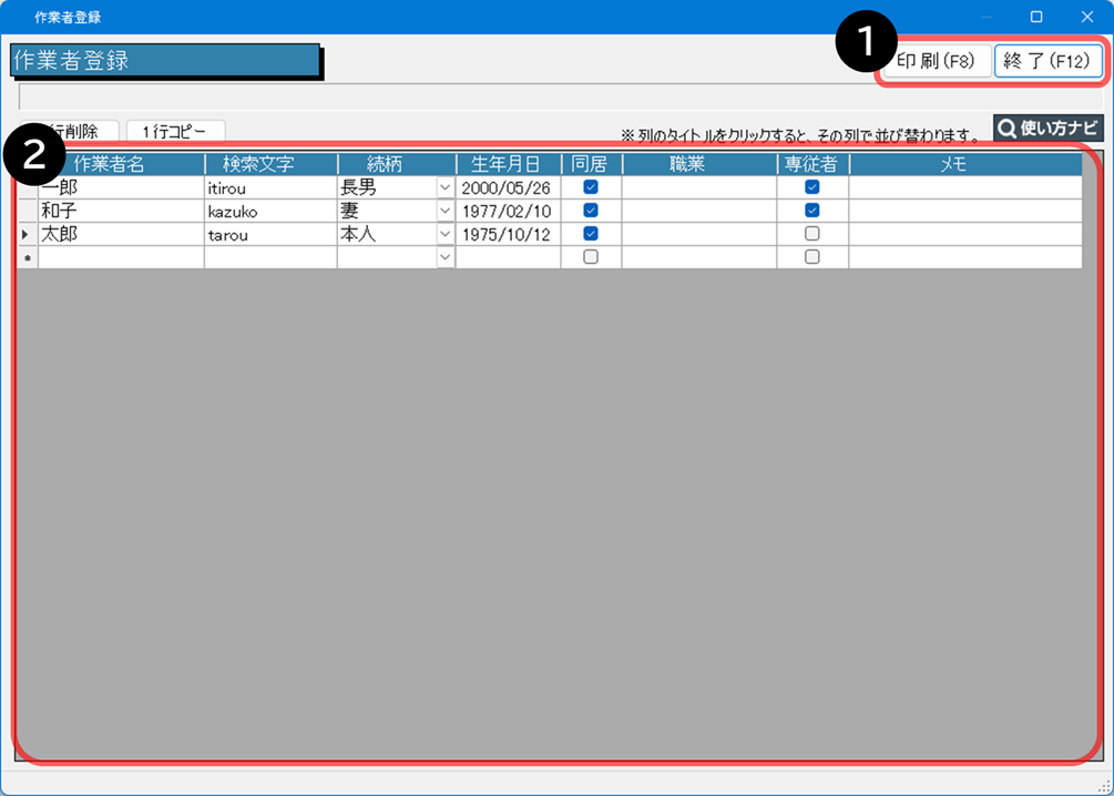 作業者は、主に「作業記録簿」で作業内容を入力する際に使用します。