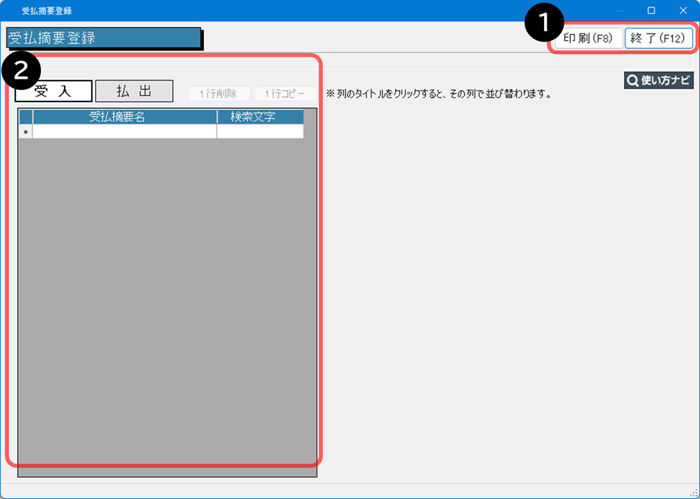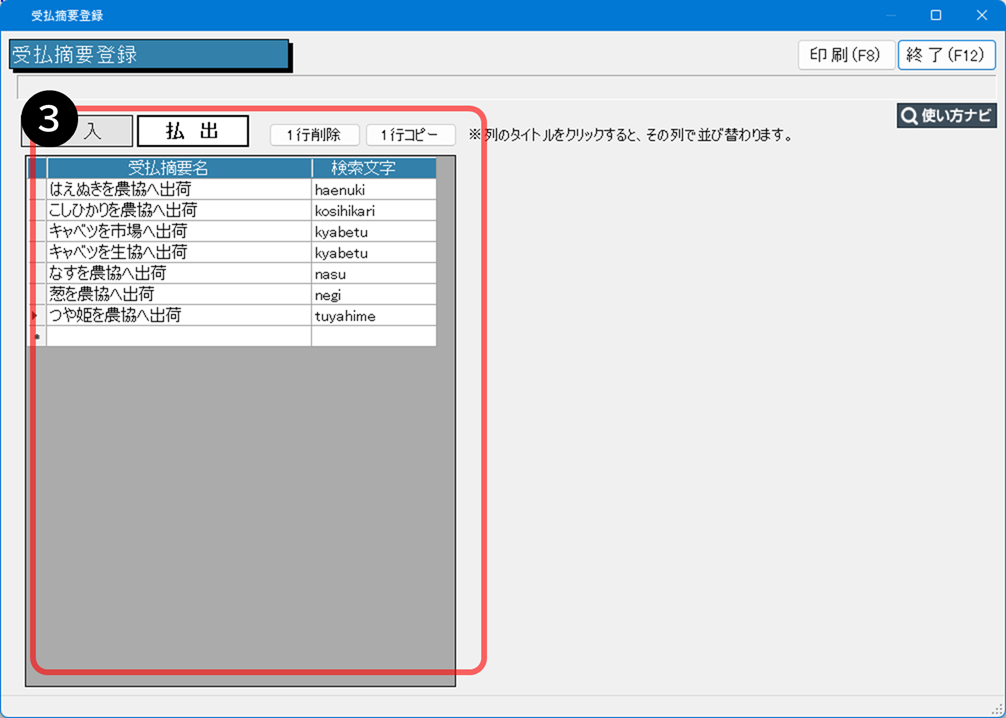 受入/払出摘要は、主に「農産物受払帳」で農産物の受け入れと払い出しを入力する際に使用します。